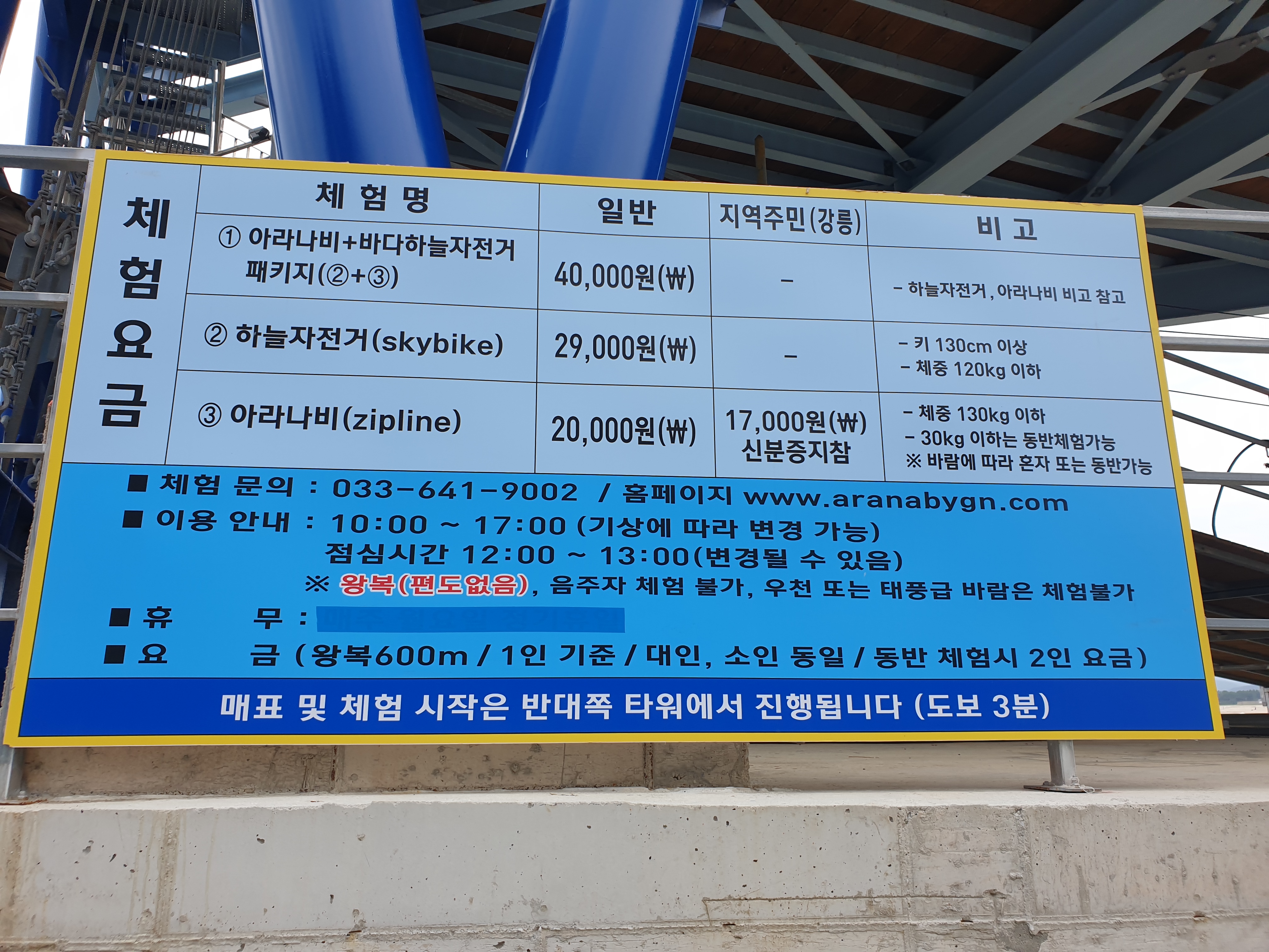 솔바람다리 옆을 보면 아라나비(집라인)와 하늘자전거(스카이바이크)를 탈 수 있는 곳이 있습니다.
