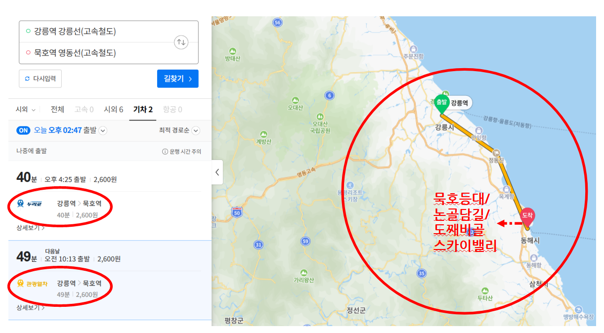 강릉역에서 정동진역을거쳐 묵호역으로 갑니다.