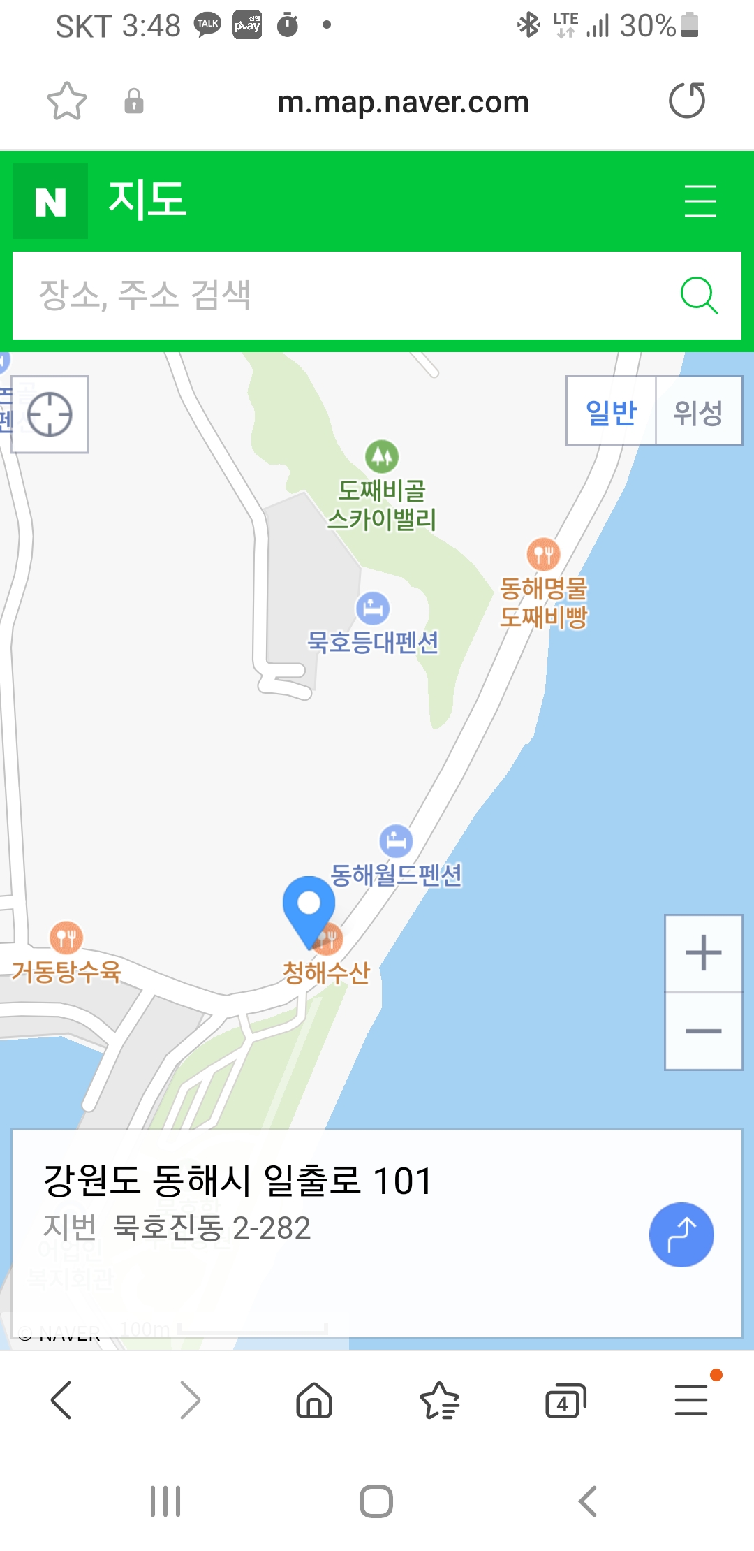 동해 묵호 해랑전망대 바로 앞에 스카이밸리가 있습니다.