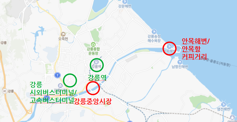안목해변 커피거리 -> 강릉 중앙시장(자유중식) -> 강릉~묵호 해안선열차여행 --