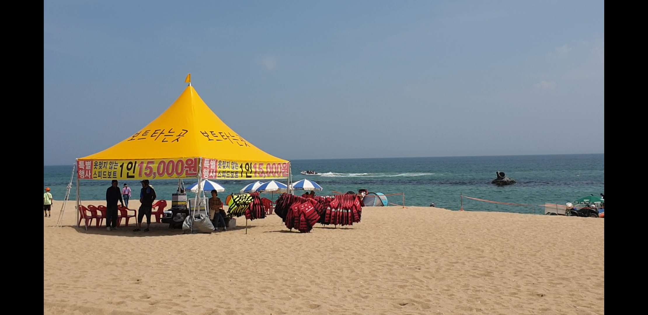 안목해변에는 1인 15000원을 내면 스피드보트를 탈 수 있습니다.