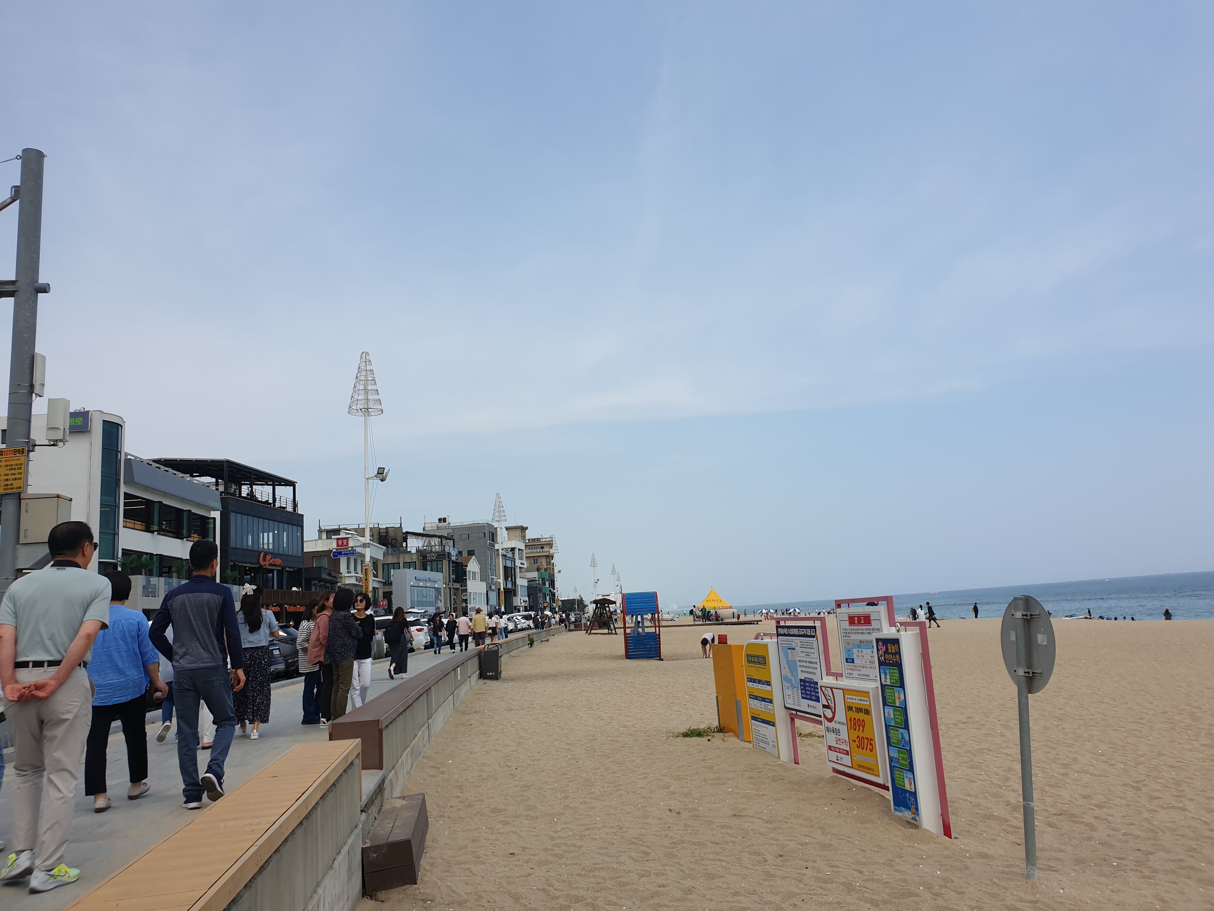 안목해변은 길이 500m 정도의 해변이 펼쳐져있습니다. 가족단위로 놀러온 분들이 많이 보입니다.