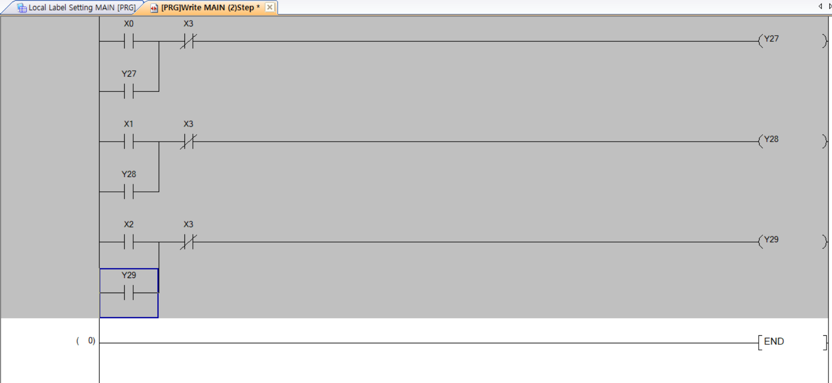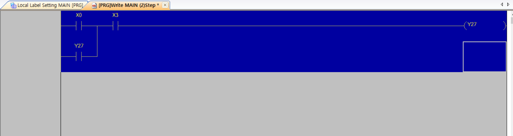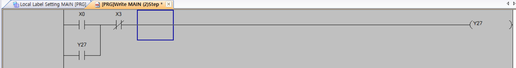 a접점인 x0와 y27을 병렬로 구성하고 x3 b접점을 질렬로 연결하여 y27 출력값에 연결했습니다.