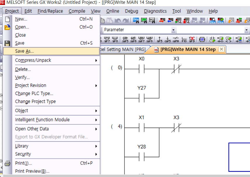 멜섹 GX Works에서는 프로젝트를 만든 이후에 파일 경로와 이름을 정합니다.