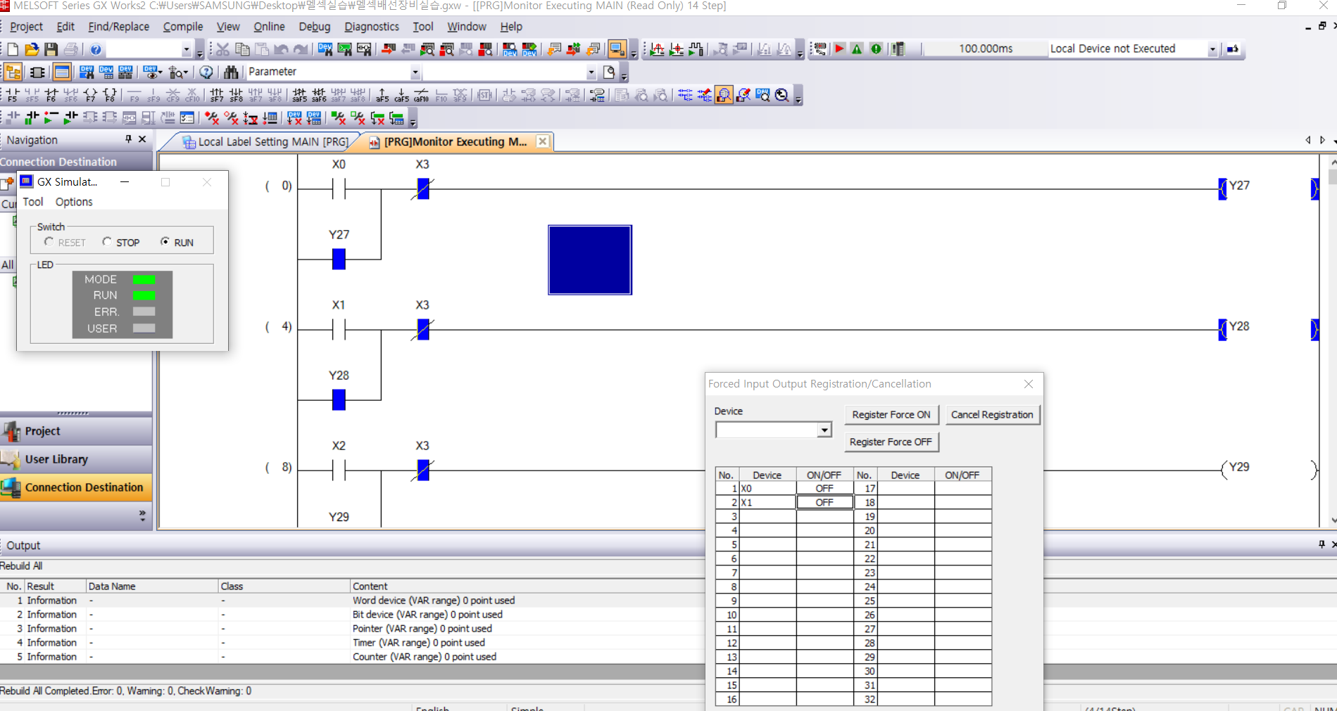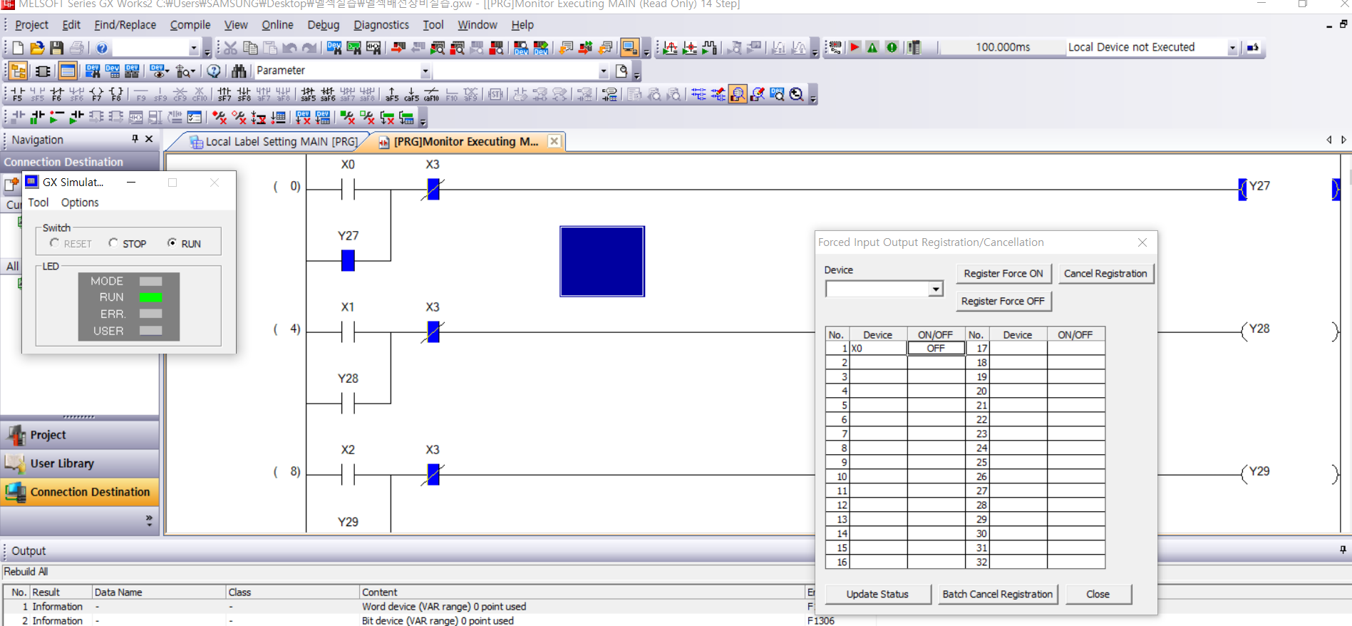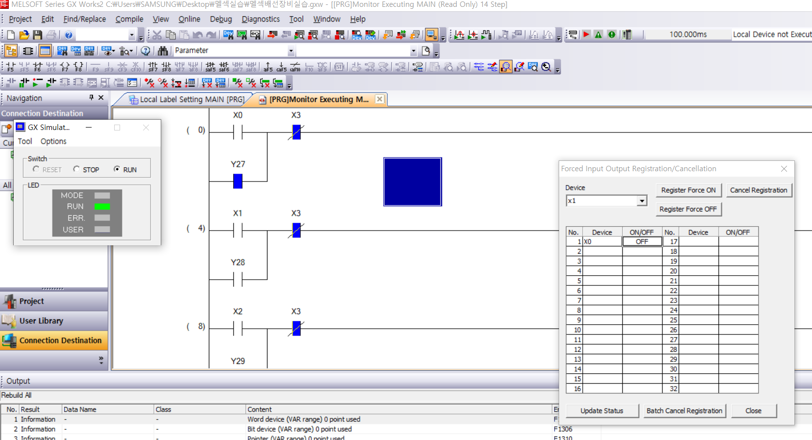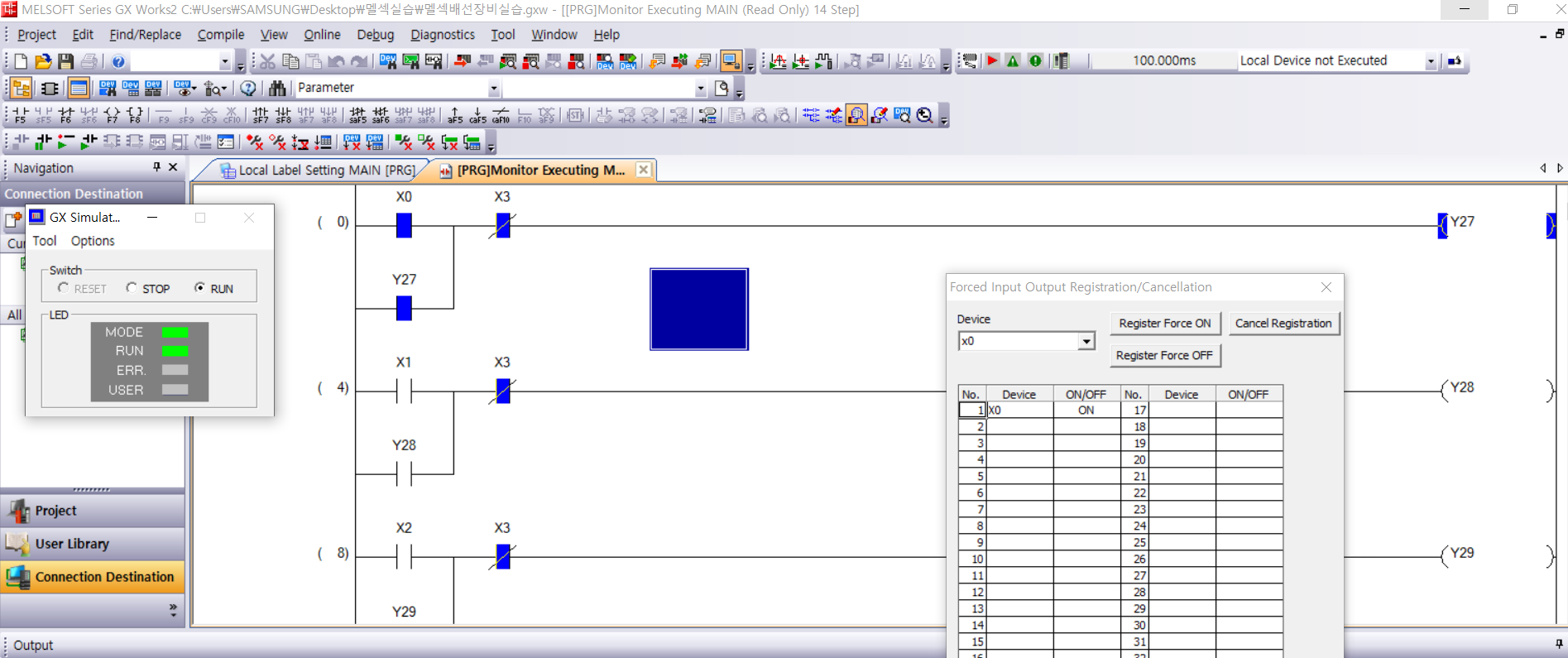 device에 x0를 입력하고 register force ON을 눌렀습니다.