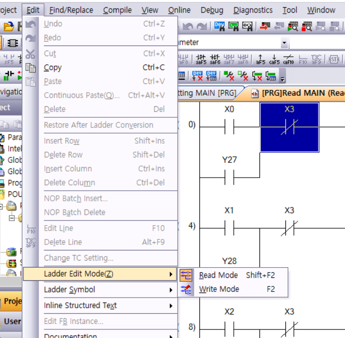 이럴때는 Edit의 Ladder Edit Mode의 Write Mode를 클릭해주시면 됩니다.