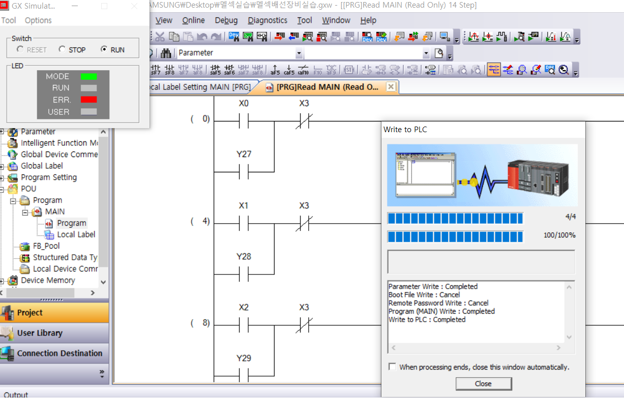 2. 멜섹 GX Works2 시뮬레이션, 통신, 소스쓰기(pc->plc) 본문