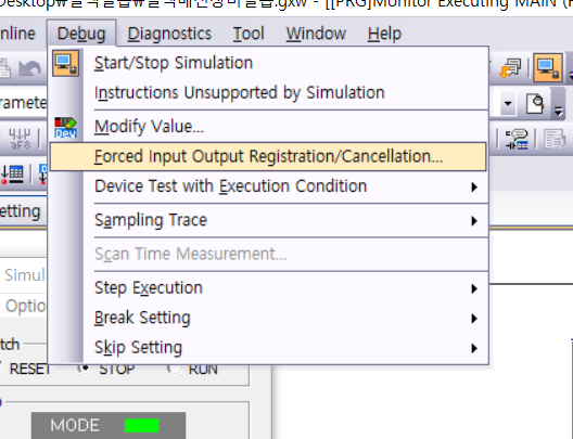 상단 Debug 탭에 Forced Input Output Registration/Cancellation을 눌러줍니다.
